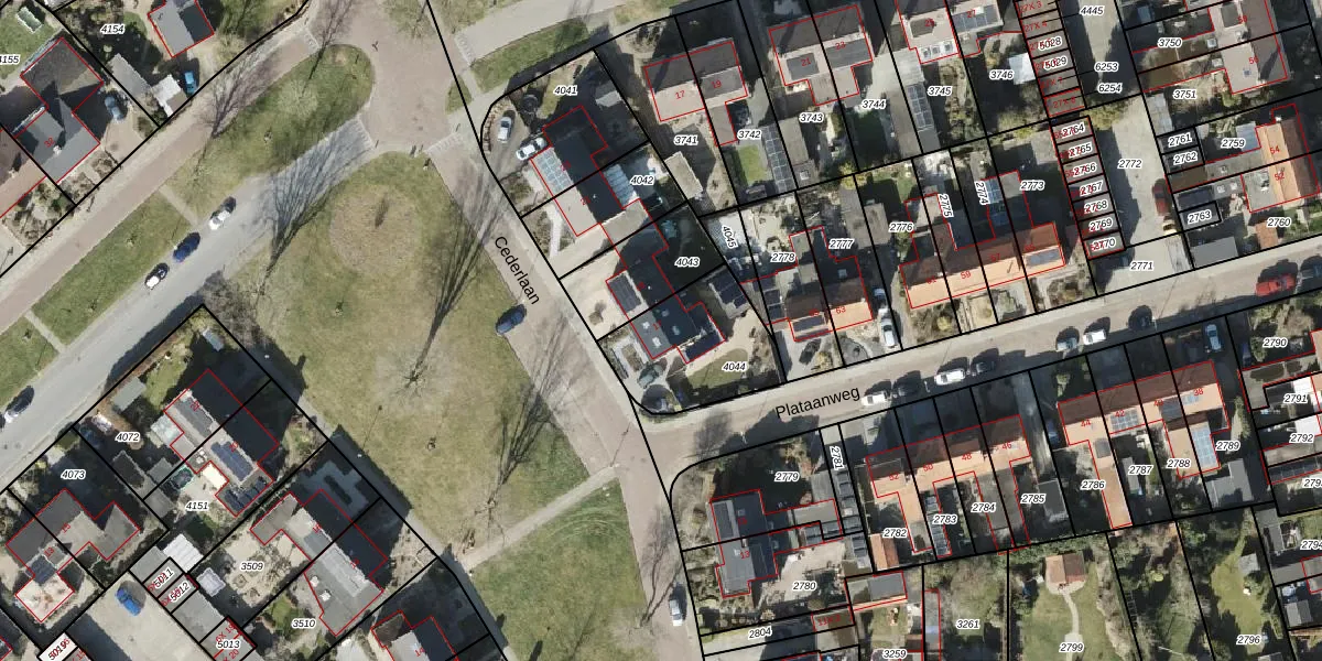 Cederlaan 17 is gelegen op kadastraal perceel RDN01I4044. Deze kadastrale aanduiding is uniek en wordt gebruikt door het Kadaster om eigendomsrechten en andere zakelijke rechten vast te leggen. Het perceel maakt onderdeel uit van de kadastrale gemeente Roden.