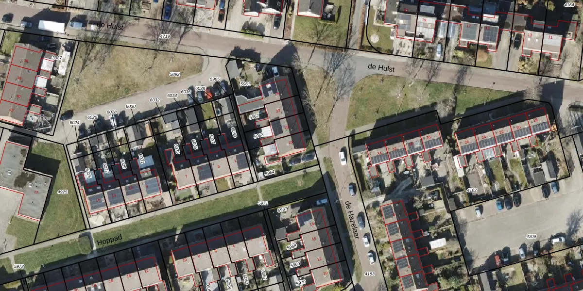 de Hazelaar 18 is gelegen op kadastraal perceel RDN01I5964. Deze kadastrale aanduiding is uniek en wordt gebruikt door het Kadaster om eigendomsrechten en andere zakelijke rechten vast te leggen. Het perceel maakt onderdeel uit van de kadastrale gemeente Roden.