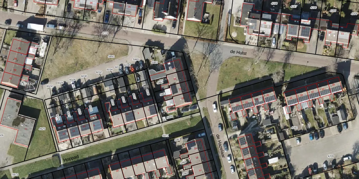 de Hazelaar 20 is gelegen op kadastraal perceel RDN01I5963. Deze kadastrale aanduiding is uniek en wordt gebruikt door het Kadaster om eigendomsrechten en andere zakelijke rechten vast te leggen. Het perceel maakt onderdeel uit van de kadastrale gemeente Roden.