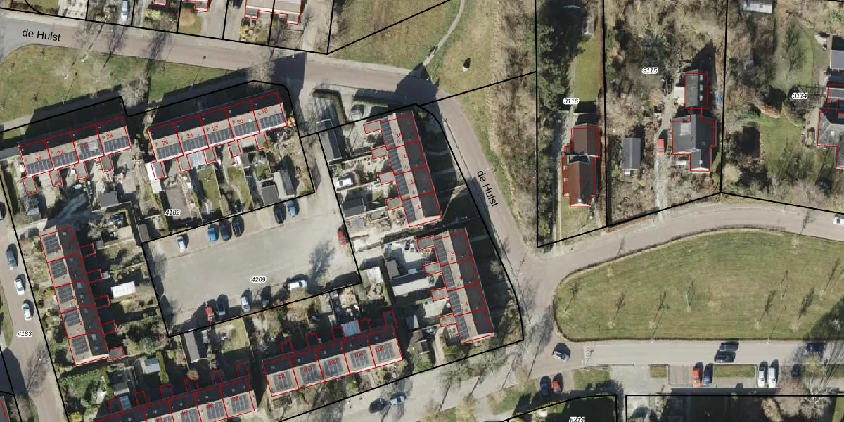 Het perceel waarop de Hulst 10 staat heeft een oppervlakte van 6975 m². Dit is een zeer groot perceel. De perceeloppervlakte wordt geregistreerd door het Kadaster. Gedetailleerde informatie over de maten van dit perceel kunt u vinden in het rapport Kadastrale kaart met maatvoering van de Hulst 10.
