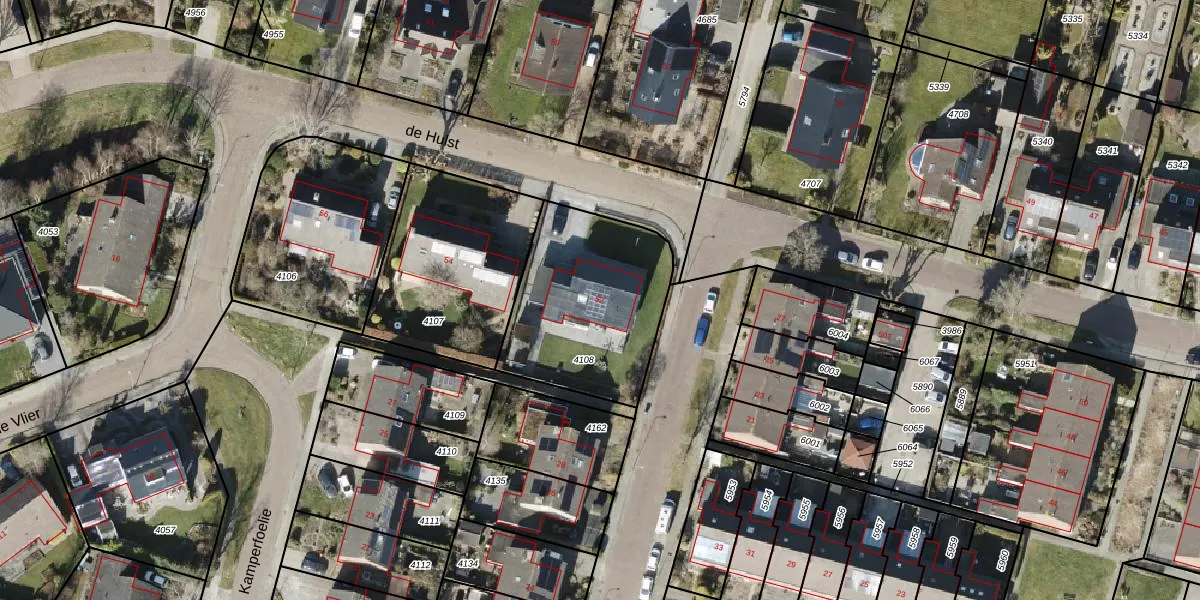 Het perceel waarop de Hulst 52 staat heeft een oppervlakte van 704 m². Dit is een groot perceel. De perceeloppervlakte wordt geregistreerd door het Kadaster. Gedetailleerde informatie over de maten van dit perceel kunt u vinden in het rapport Kadastrale kaart met maatvoering van de Hulst 52.