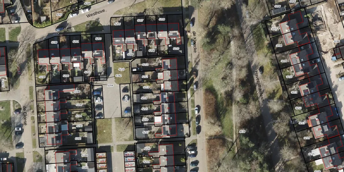Gebruik de zoekbalk of klik op een perceel voor informatie over de adressen binnen dit perceel.