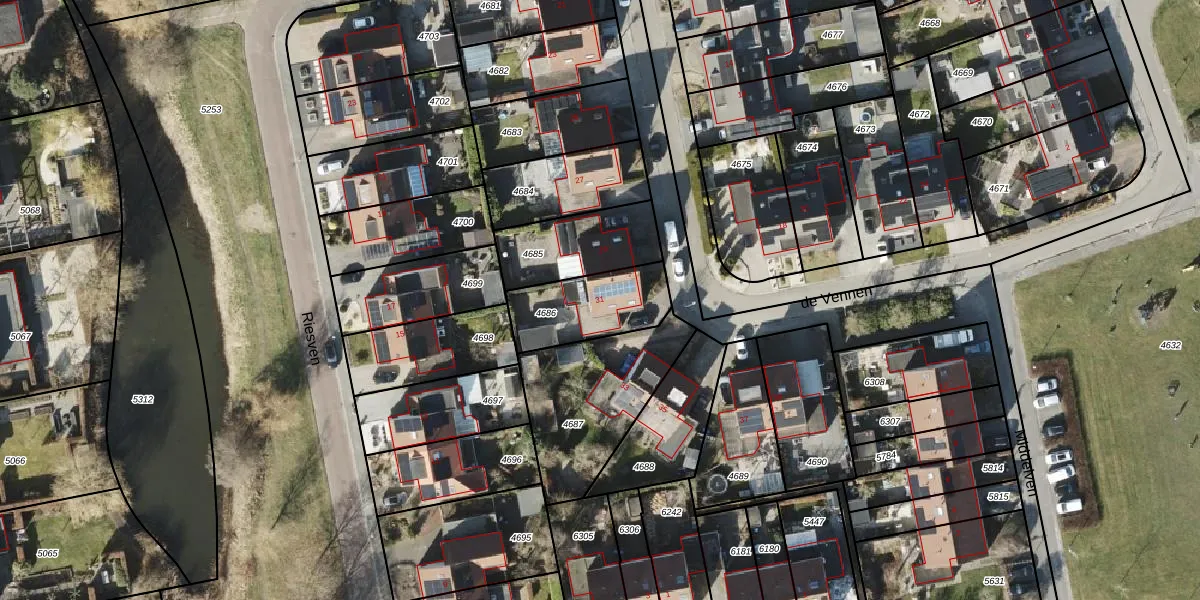 de Vennen 31 is gelegen op kadastraal perceel RDN01K4686. Deze kadastrale aanduiding is uniek en wordt gebruikt door het Kadaster om eigendomsrechten en andere zakelijke rechten vast te leggen. Het perceel maakt onderdeel uit van de kadastrale gemeente Roden.