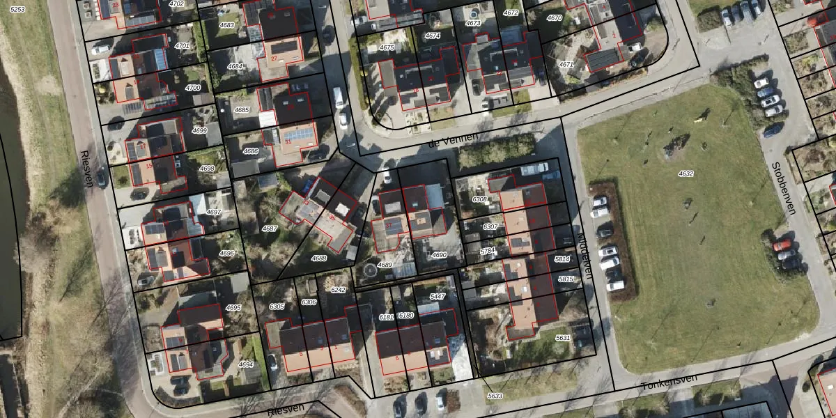 Gebruik de zoekbalk of klik op een perceel voor informatie over de adressen binnen dit perceel.