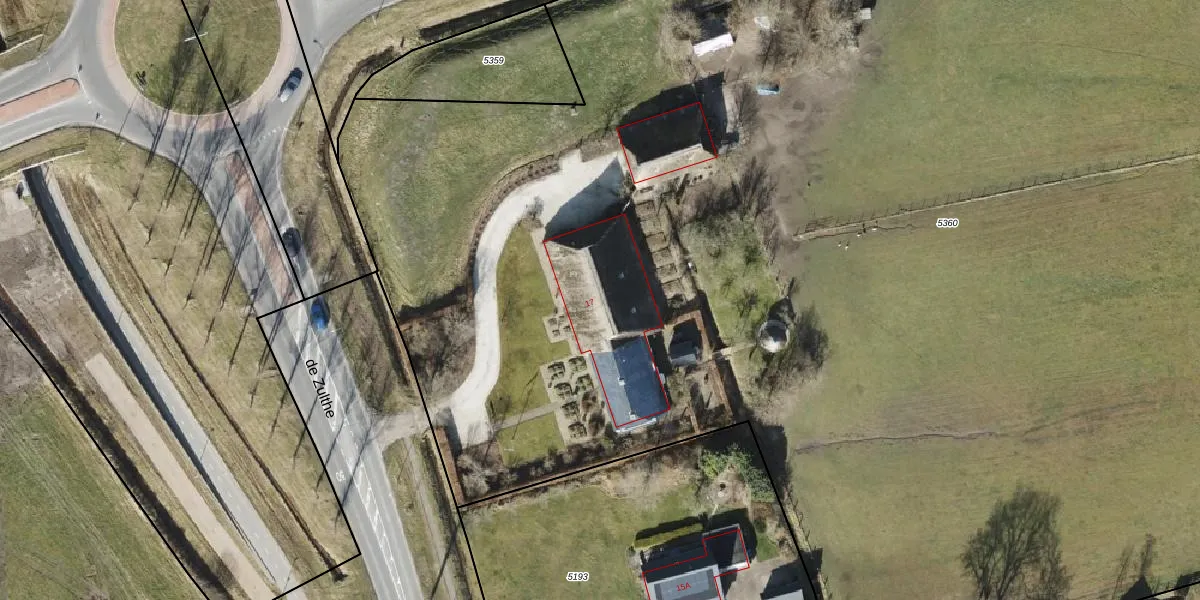 Het perceel waarop de Zulthe 17 staat heeft een oppervlakte van 1,5 ha. Dit is een zeer groot perceel. De perceeloppervlakte wordt geregistreerd door het Kadaster. Gedetailleerde informatie over de maten van dit perceel kunt u vinden in het rapport Kadastrale kaart met maatvoering van de Zulthe 17.