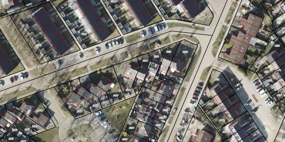 den Dam 8 is gelegen op kadastraal perceel RDN01H2269. Deze kadastrale aanduiding is uniek en wordt gebruikt door het Kadaster om eigendomsrechten en andere zakelijke rechten vast te leggen. Het perceel maakt onderdeel uit van de kadastrale gemeente Roden.