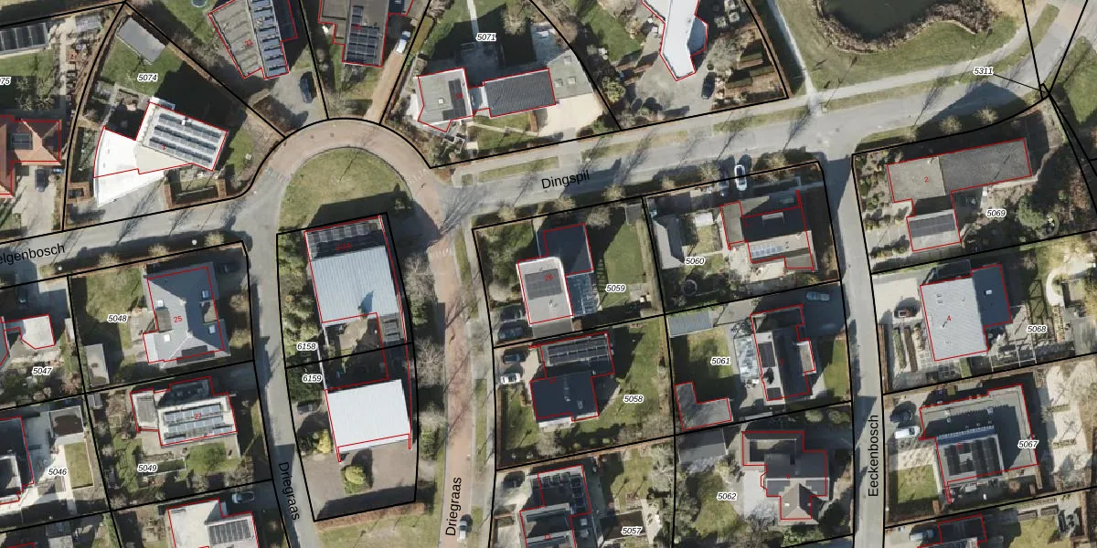 Het perceel waarop Dingspil 26 staat heeft een oppervlakte van 695 m². Dit is een groot perceel. De perceeloppervlakte wordt geregistreerd door het Kadaster. Gedetailleerde informatie over de maten van dit perceel kunt u vinden in het rapport Kadastrale kaart met maatvoering van Dingspil 26.
