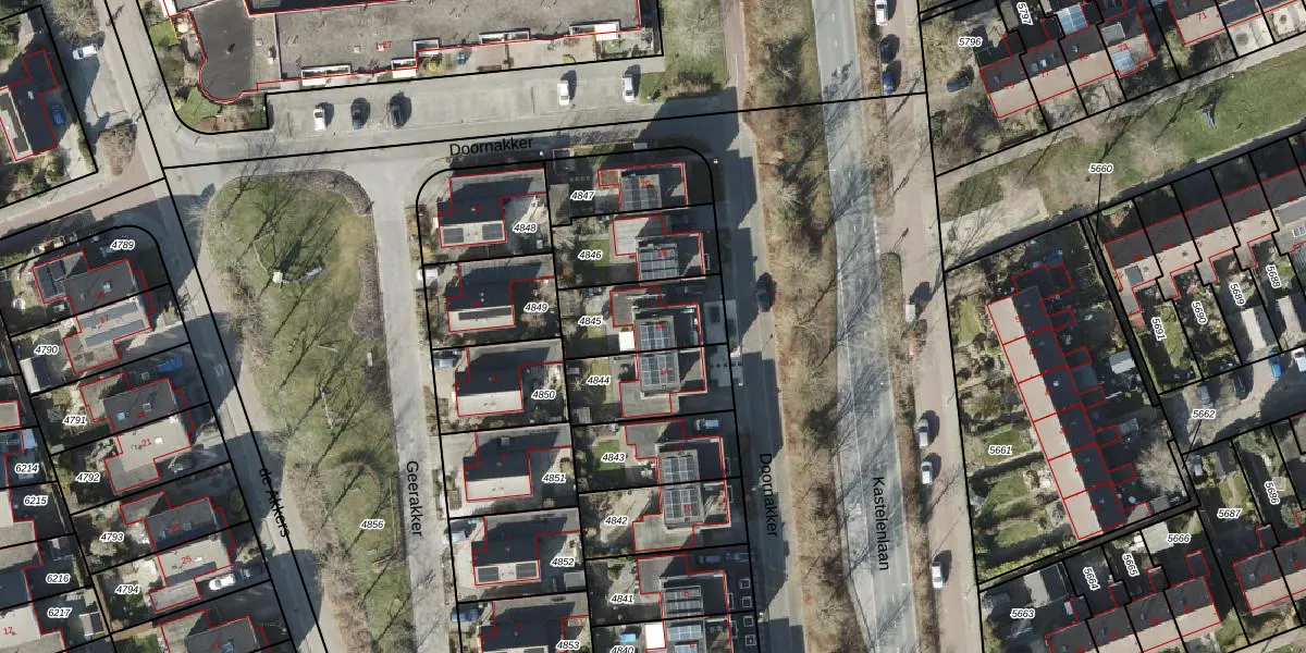 Doornakker 16 is gelegen op kadastraal perceel RDN01K4845. Deze kadastrale aanduiding is uniek en wordt gebruikt door het Kadaster om eigendomsrechten en andere zakelijke rechten vast te leggen. Het perceel maakt onderdeel uit van de kadastrale gemeente Roden.