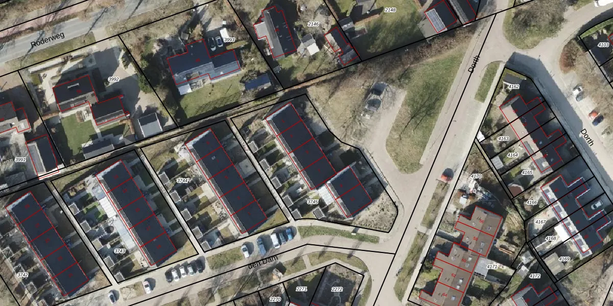Het adres ligt op het perceel RDN01-H-3745, dat zich in de kadastrale gemeente Roden bevindt. Het perceel is 1297 m² groot. Dat is kleiner dan de gemiddelde perceeloppervlakte in Roden, dat op 5510,59 m² ligt. Het grootste perceel in de kadastrale gemeente is 1,51 km². Het kleinste perceel heeft een oppervlakte van 0 m². Op het perceel liggen in totaal 6 adressen. De laatste wijziging in het de Basisregistratie Kadaster (BRK) was op 02-12-2003.