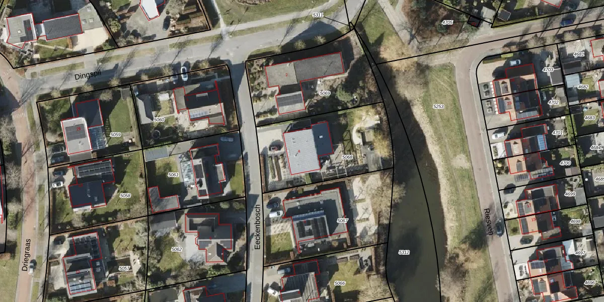 Het perceel waarop Eeckenbosch 4 staat heeft een oppervlakte van 972 m². Dit is een groot perceel. De perceeloppervlakte wordt geregistreerd door het Kadaster. Gedetailleerde informatie over de maten van dit perceel kunt u vinden in het rapport Kadastrale kaart met maatvoering van Eeckenbosch 4.