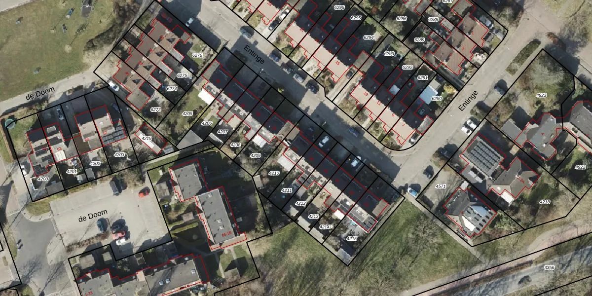 Het perceel waarop Entinge 22 staat heeft een oppervlakte van 252 m². Dit is een middelgroot perceel. De perceeloppervlakte wordt geregistreerd door het Kadaster. Gedetailleerde informatie over de maten van dit perceel kunt u vinden in het rapport Kadastrale kaart met maatvoering van Entinge 22.