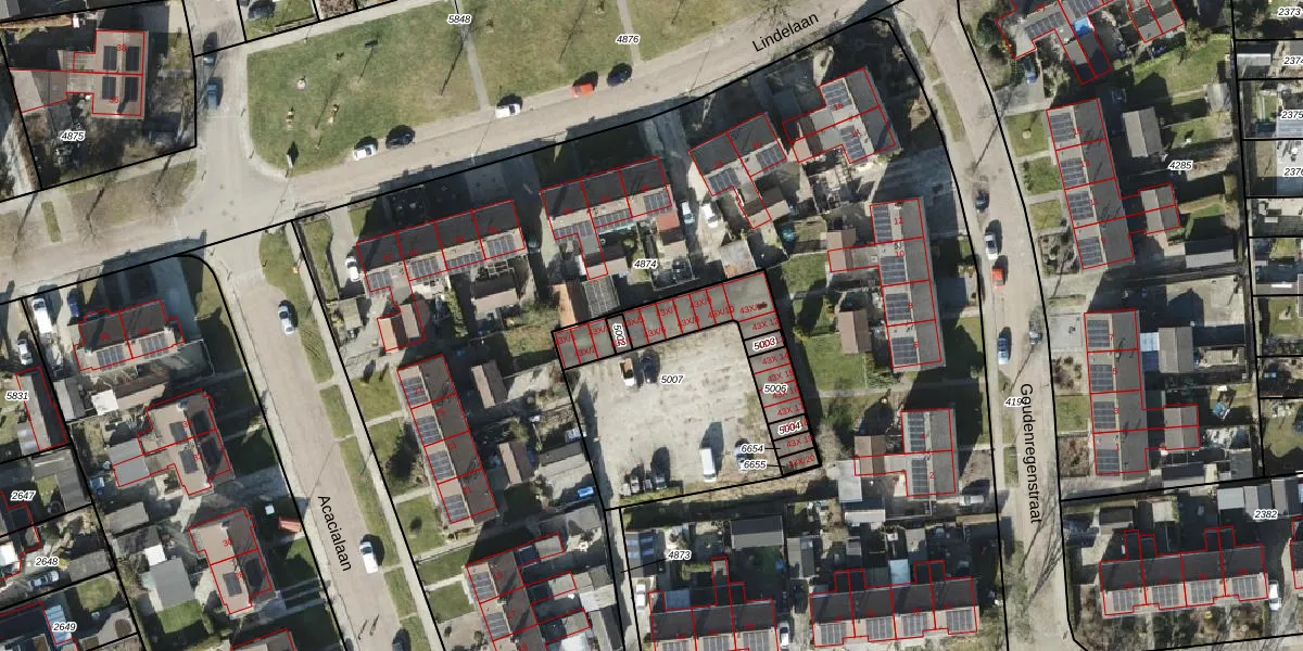 Esdoornstraat 43-X-6 is gelegen op kadastraal perceel RDN01I5006. Deze kadastrale aanduiding is uniek en wordt gebruikt door het Kadaster om eigendomsrechten en andere zakelijke rechten vast te leggen. Het perceel maakt onderdeel uit van de kadastrale gemeente Roden.