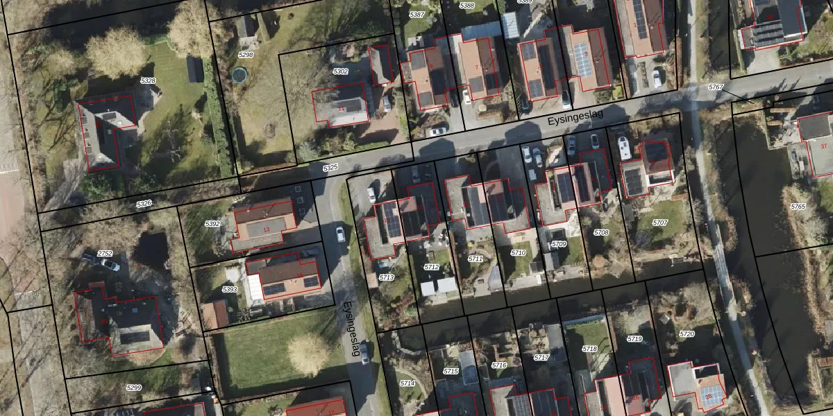 Eysingeslag 12 is gelegen op kadastraal perceel RDN01K5712. Deze kadastrale aanduiding is uniek en wordt gebruikt door het Kadaster om eigendomsrechten en andere zakelijke rechten vast te leggen. Het perceel maakt onderdeel uit van de kadastrale gemeente Roden.