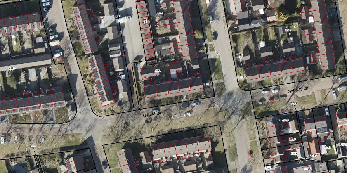 Geluklaan 5 is gelegen op kadastraal perceel RDN01I2998. Deze kadastrale aanduiding is uniek en wordt gebruikt door het Kadaster om eigendomsrechten en andere zakelijke rechten vast te leggen. Het perceel maakt onderdeel uit van de kadastrale gemeente Roden.