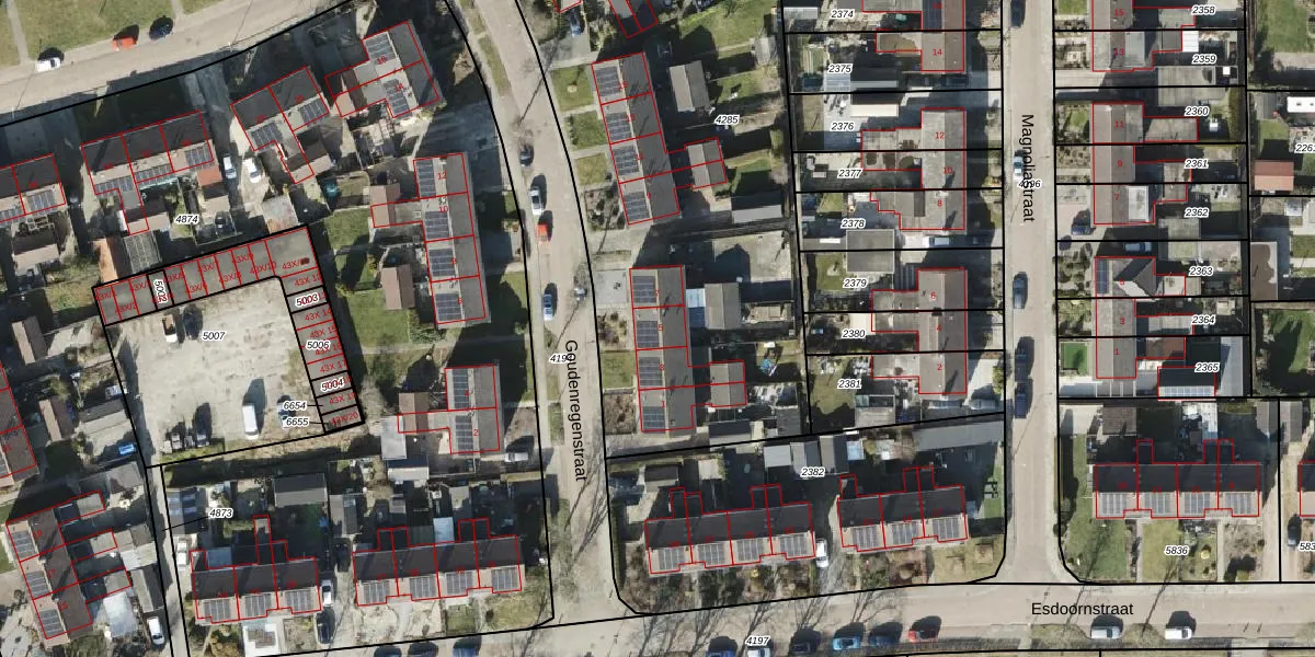 Het perceel waarop Goudenregenstraat 5 staat heeft een oppervlakte van 3114 m². Dit is een zeer groot perceel. De perceeloppervlakte wordt geregistreerd door het Kadaster. Gedetailleerde informatie over de maten van dit perceel kunt u vinden in het rapport Kadastrale kaart met maatvoering van Goudenregenstraat 5.