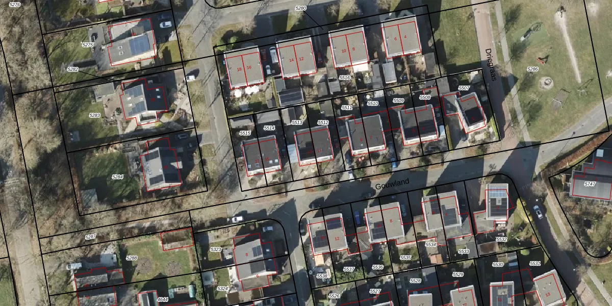 Gebruik de zoekbalk of klik op een perceel voor informatie over de adressen binnen dit perceel.