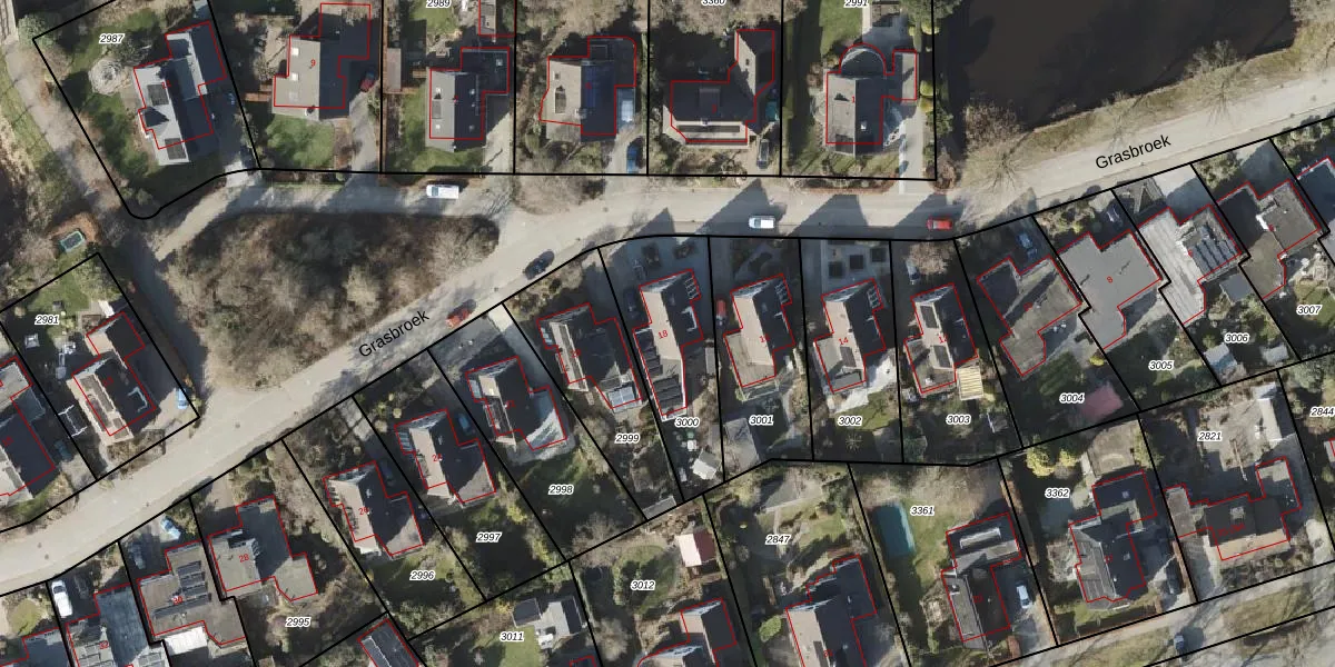 Grasbroek 18 is gelegen op kadastraal perceel RDN01H3000. Deze kadastrale aanduiding is uniek en wordt gebruikt door het Kadaster om eigendomsrechten en andere zakelijke rechten vast te leggen. Het perceel maakt onderdeel uit van de kadastrale gemeente Roden.