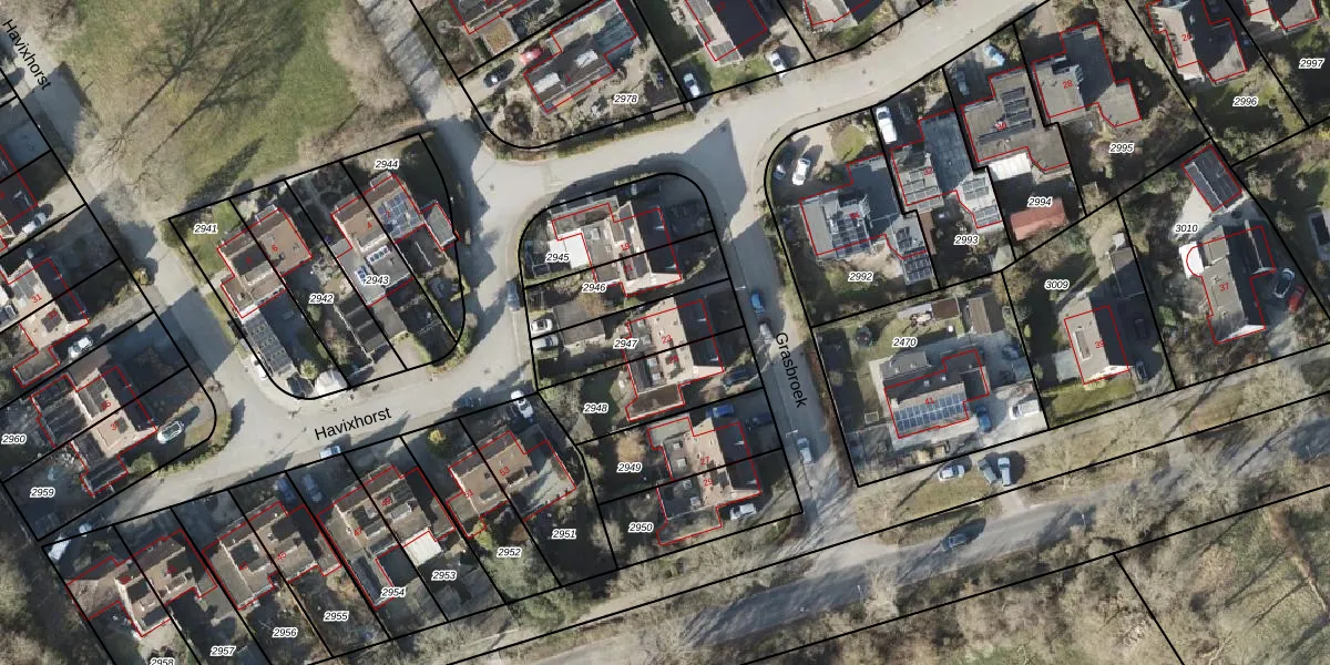 Grasbroek 23 is gelegen op kadastraal perceel RDN01H2947. Deze kadastrale aanduiding is uniek en wordt gebruikt door het Kadaster om eigendomsrechten en andere zakelijke rechten vast te leggen. Het perceel maakt onderdeel uit van de kadastrale gemeente Roden.
