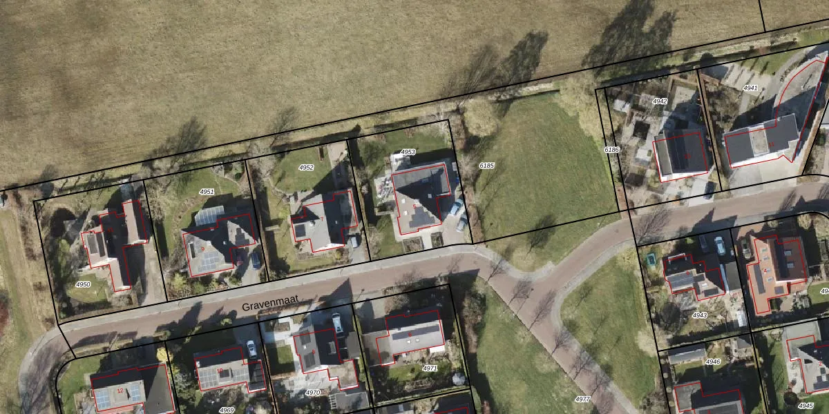 Gravenmaat 5 is gelegen op kadastraal perceel RDN01K4953. Deze kadastrale aanduiding is uniek en wordt gebruikt door het Kadaster om eigendomsrechten en andere zakelijke rechten vast te leggen. Het perceel maakt onderdeel uit van de kadastrale gemeente Roden.