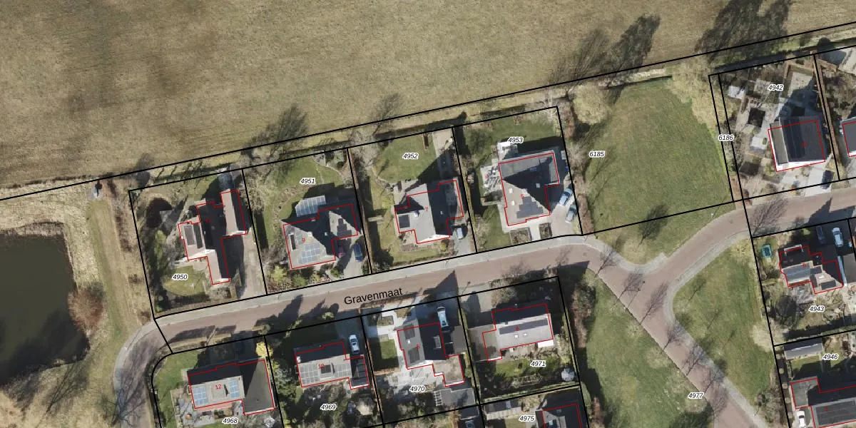 Gravenmaat 7 is gelegen op kadastraal perceel RDN01K4952. Deze kadastrale aanduiding is uniek en wordt gebruikt door het Kadaster om eigendomsrechten en andere zakelijke rechten vast te leggen. Het perceel maakt onderdeel uit van de kadastrale gemeente Roden.