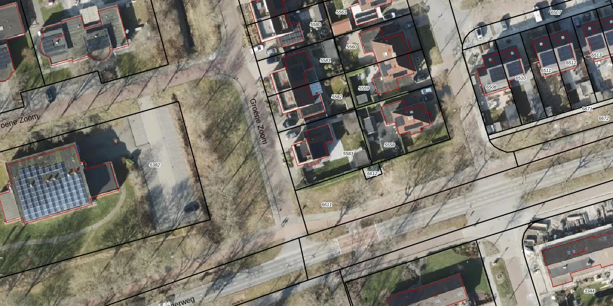 Groene Zoom 26 is gelegen op kadastraal perceel RDN01I5583. Deze kadastrale aanduiding is uniek en wordt gebruikt door het Kadaster om eigendomsrechten en andere zakelijke rechten vast te leggen. Het perceel maakt onderdeel uit van de kadastrale gemeente Roden.
