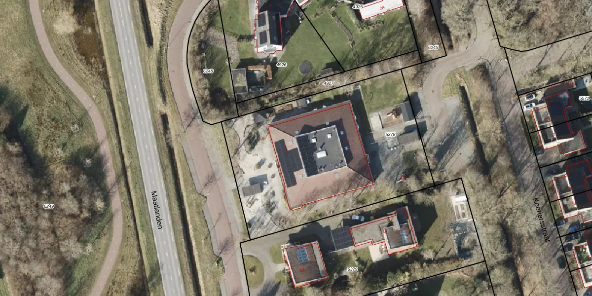 Het perceel waarop Groene Zoom 6 staat heeft een oppervlakte van 2635 m². Dit is een zeer groot perceel. De perceeloppervlakte wordt geregistreerd door het Kadaster. Gedetailleerde informatie over de maten van dit perceel kunt u vinden in het rapport Kadastrale kaart met maatvoering van Groene Zoom 6.