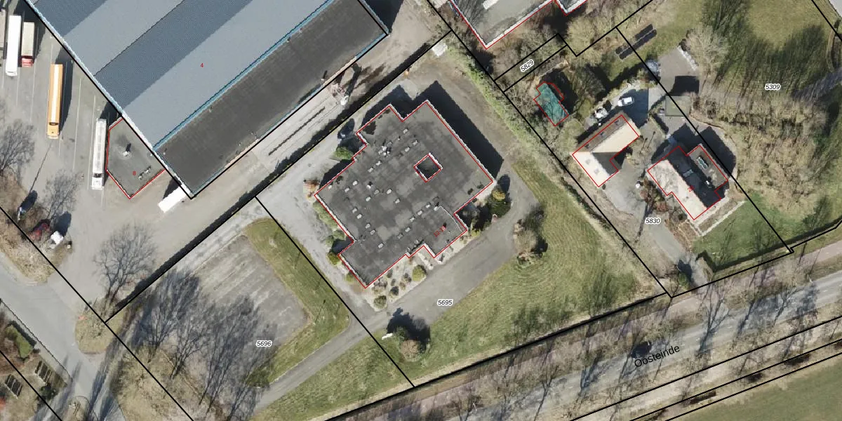 Het adres ligt op het perceel RDN01-I-5695, dat zich in de kadastrale gemeente Roden bevindt. Het perceel is 4280 m² groot. Dat is kleiner dan de gemiddelde perceeloppervlakte in Roden, dat op 5510,12 m² ligt. Het grootste perceel in de kadastrale gemeente is 1,51 km². Het kleinste perceel heeft een oppervlakte van 0 m². Op het perceel zijn 8 adressen aanwezig. De laatste wijziging in het de Basisregistratie Kadaster (BRK) was op 22-03-2006.