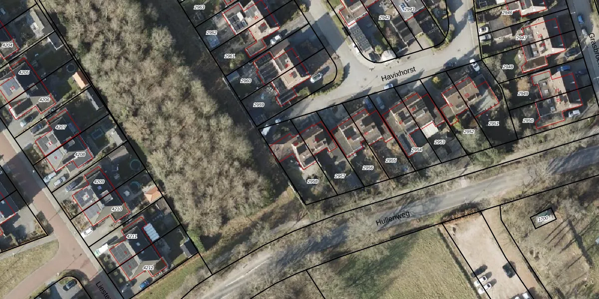 Het perceel waarop Havixhorst 39 staat heeft een oppervlakte van 323 m². Dit is een groot perceel. De perceeloppervlakte wordt geregistreerd door het Kadaster. Gedetailleerde informatie over de maten van dit perceel kunt u vinden in het rapport Kadastrale kaart met maatvoering van Havixhorst 39.