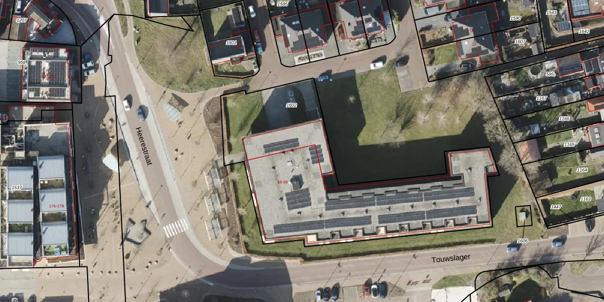 Het perceel waarop het adres ligt is RDN01-M-1602. De afkorting 'RDN01' staat voor kadastrale gemeente Roden. Het perceel is kleiner dan gemiddeld in Roden. Het perceel is 2675 m² groot, terwijl het gemiddelde ligt op 5505,4 m². Het grootste perceel in de kadastrale gemeente is 1,51 km². Het kleinste perceel heeft een oppervlakte van 0 m². Op het perceel liggen in totaal 42 adressen. De laatste wijziging in het de Basisregistratie Kadaster (BRK) was op 20-10-2011.
