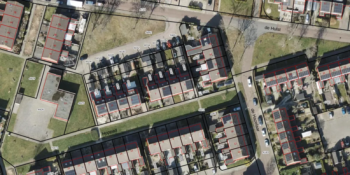 Het perceel waarop Hoppad 3 staat heeft een oppervlakte van 158 m². Dit is een middelgroot perceel. De perceeloppervlakte wordt geregistreerd door het Kadaster. Gedetailleerde informatie over de maten van dit perceel kunt u vinden in het rapport Kadastrale kaart met maatvoering van Hoppad 3.