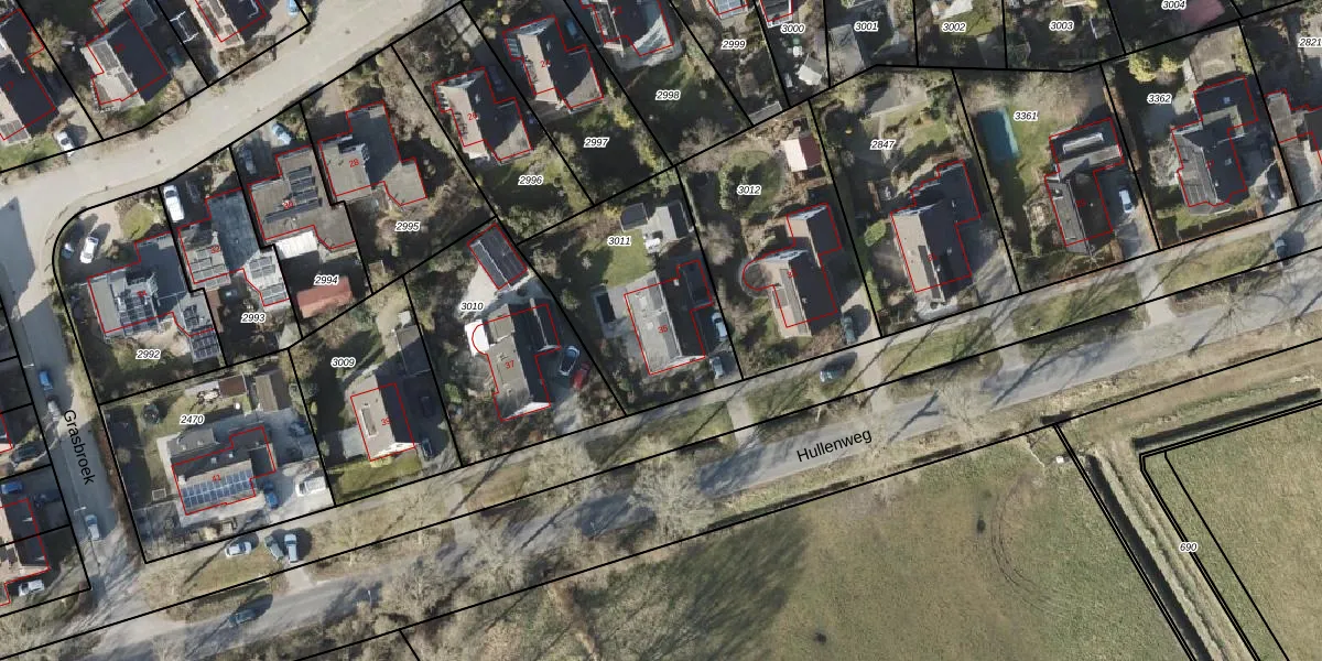Hullenweg 35 is gelegen op kadastraal perceel RDN01H3011. Deze kadastrale aanduiding is uniek en wordt gebruikt door het Kadaster om eigendomsrechten en andere zakelijke rechten vast te leggen. Het perceel maakt onderdeel uit van de kadastrale gemeente Roden.