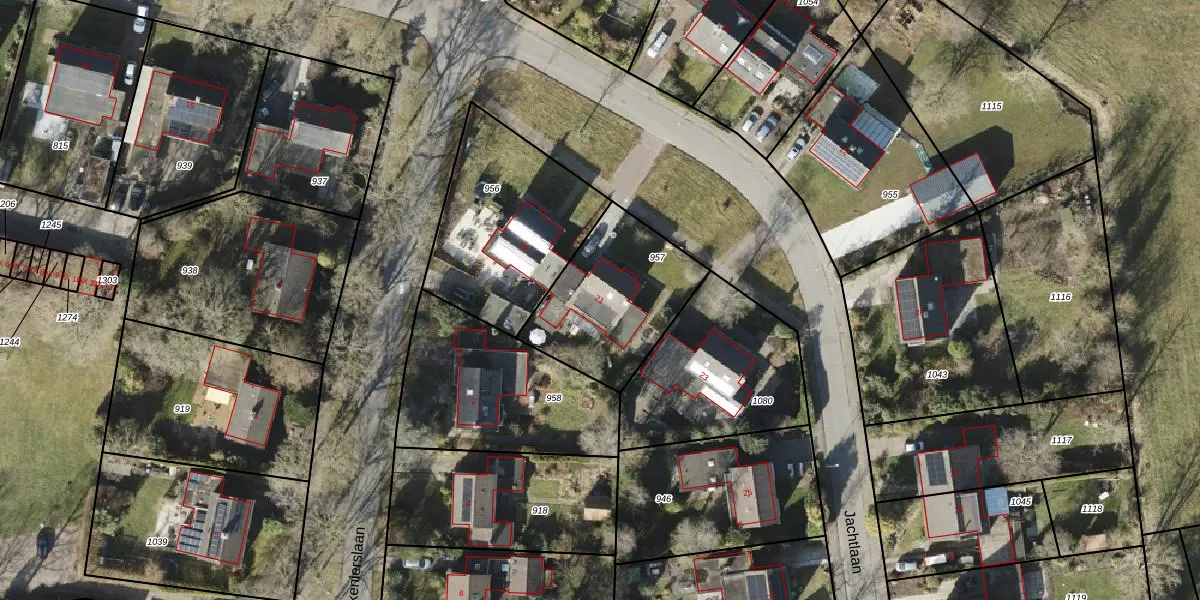 Jachtlaan 21 is gelegen op kadastraal perceel RDN01E957. Deze kadastrale aanduiding is uniek en wordt gebruikt door het Kadaster om eigendomsrechten en andere zakelijke rechten vast te leggen. Het perceel maakt onderdeel uit van de kadastrale gemeente Roden.