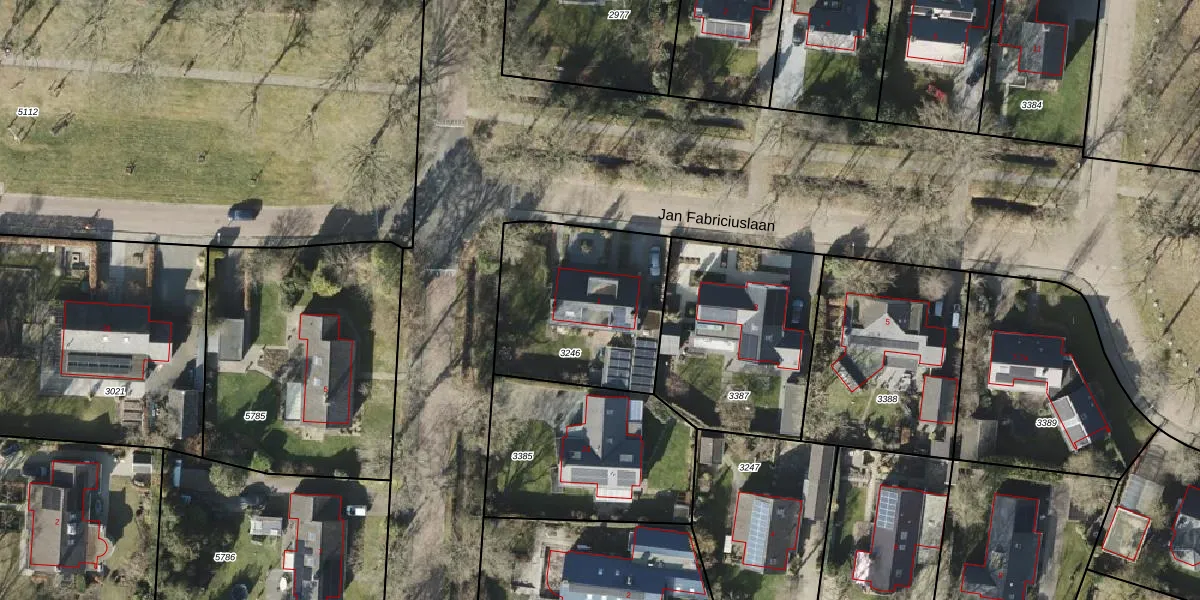 Jan Fabriciuslaan 1 is gelegen op kadastraal perceel RDN01I3246. Deze kadastrale aanduiding is uniek en wordt gebruikt door het Kadaster om eigendomsrechten en andere zakelijke rechten vast te leggen. Het perceel maakt onderdeel uit van de kadastrale gemeente Roden.
