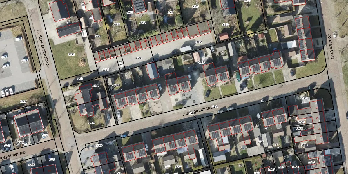Jan Ligthartstraat 15 is gelegen op kadastraal perceel RDN01I4868. Deze kadastrale aanduiding is uniek en wordt gebruikt door het Kadaster om eigendomsrechten en andere zakelijke rechten vast te leggen. Het perceel maakt onderdeel uit van de kadastrale gemeente Roden.