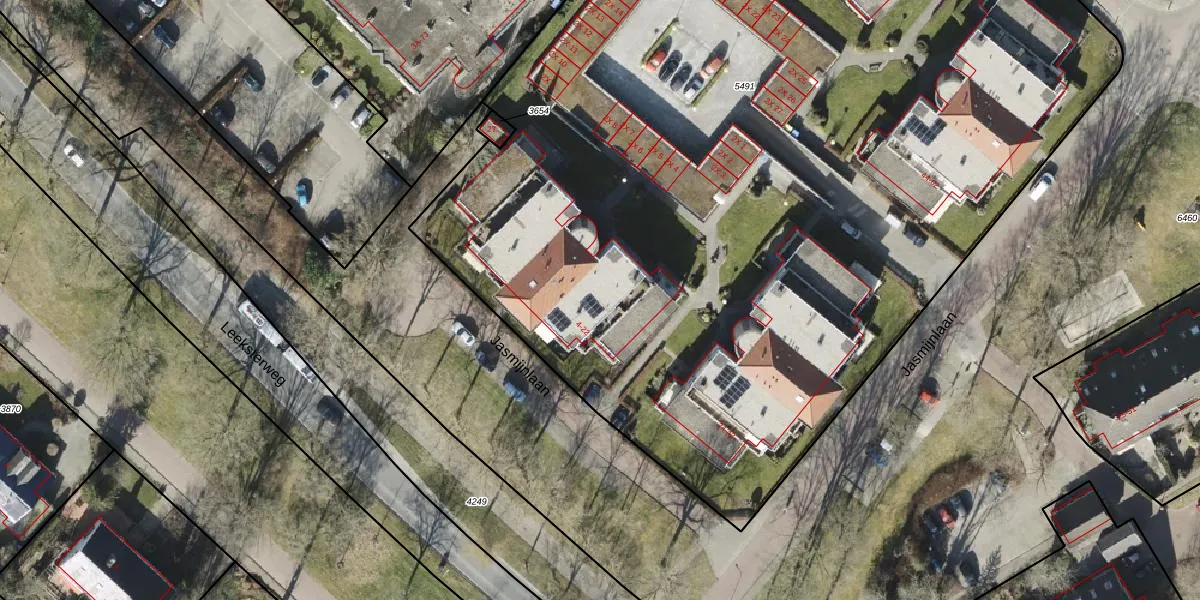 Jasmijnlaan 18 is gelegen op kadastraal perceel RDN01I5491. Deze kadastrale aanduiding is uniek en wordt gebruikt door het Kadaster om eigendomsrechten en andere zakelijke rechten vast te leggen. Het perceel maakt onderdeel uit van de kadastrale gemeente Roden.