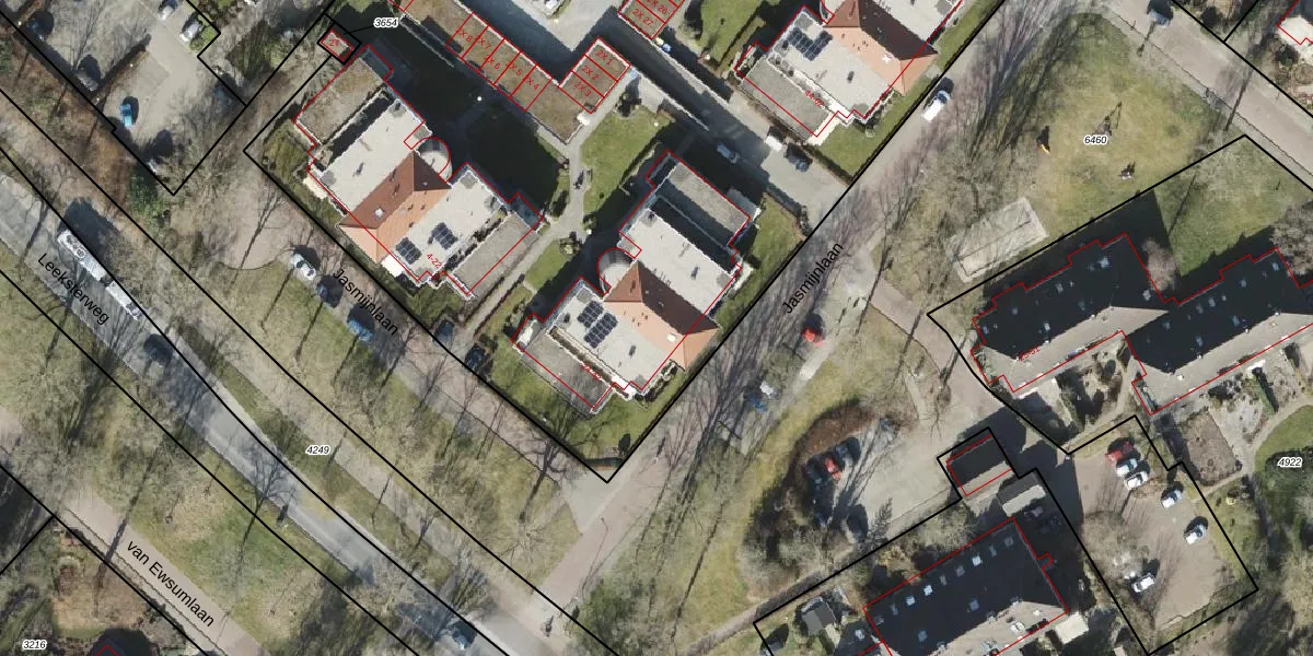 Jasmijnlaan 30 is gelegen op kadastraal perceel RDN01I5491. Deze kadastrale aanduiding is uniek en wordt gebruikt door het Kadaster om eigendomsrechten en andere zakelijke rechten vast te leggen. Het perceel maakt onderdeel uit van de kadastrale gemeente Roden.