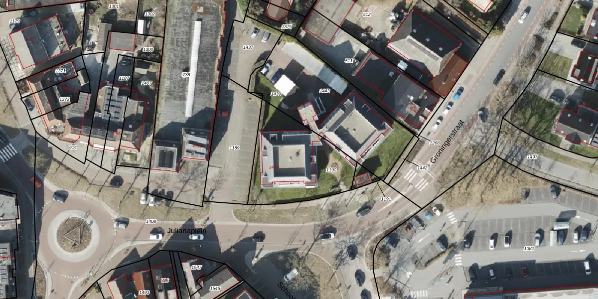 Julianaplein 42 is gelegen op kadastraal perceel RDN01M1190. Deze kadastrale aanduiding is uniek en wordt gebruikt door het Kadaster om eigendomsrechten en andere zakelijke rechten vast te leggen. Het perceel maakt onderdeel uit van de kadastrale gemeente Roden.
