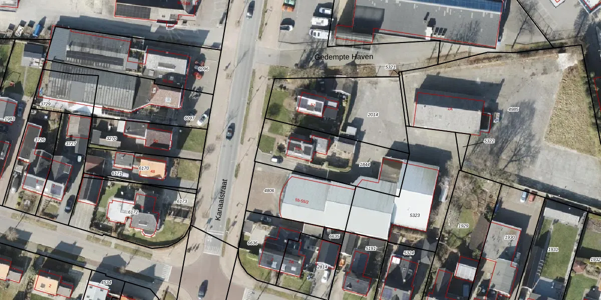 Kanaalstraat 55-A is gelegen op kadastraal perceel RDN01I1844. Deze kadastrale aanduiding is uniek en wordt gebruikt door het Kadaster om eigendomsrechten en andere zakelijke rechten vast te leggen. Het perceel maakt onderdeel uit van de kadastrale gemeente Roden.