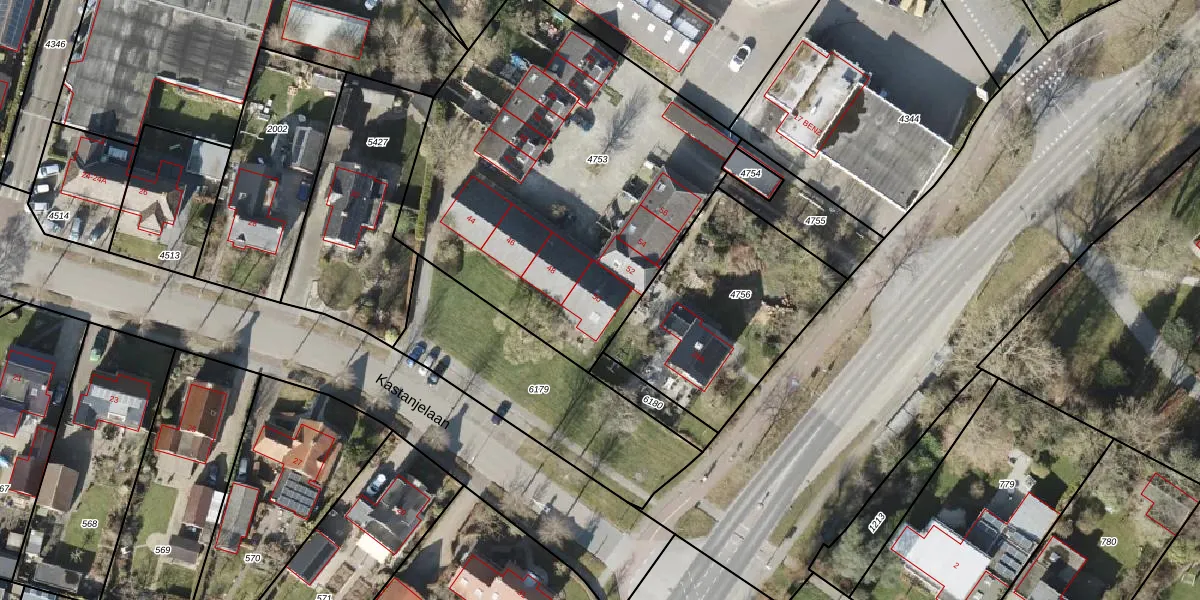 Kastanjelaan 50 is gelegen op kadastraal perceel RDN01I4753. Deze kadastrale aanduiding is uniek en wordt gebruikt door het Kadaster om eigendomsrechten en andere zakelijke rechten vast te leggen. Het perceel maakt onderdeel uit van de kadastrale gemeente Roden.