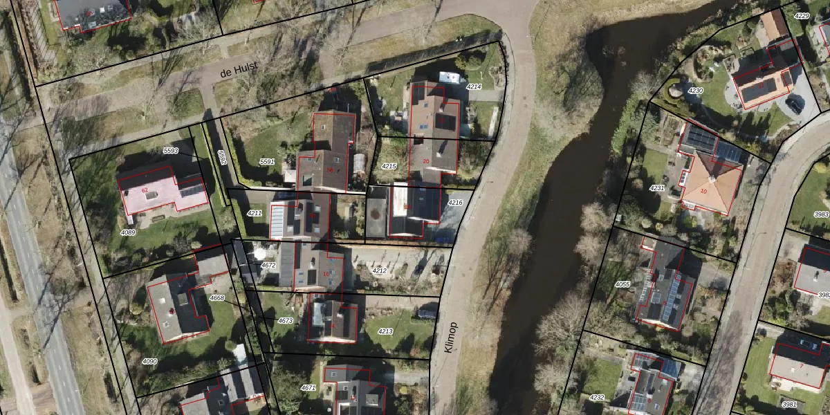 Klimop 18 is gelegen op kadastraal perceel RDN01I4216. Deze kadastrale aanduiding is uniek en wordt gebruikt door het Kadaster om eigendomsrechten en andere zakelijke rechten vast te leggen. Het perceel maakt onderdeel uit van de kadastrale gemeente Roden.