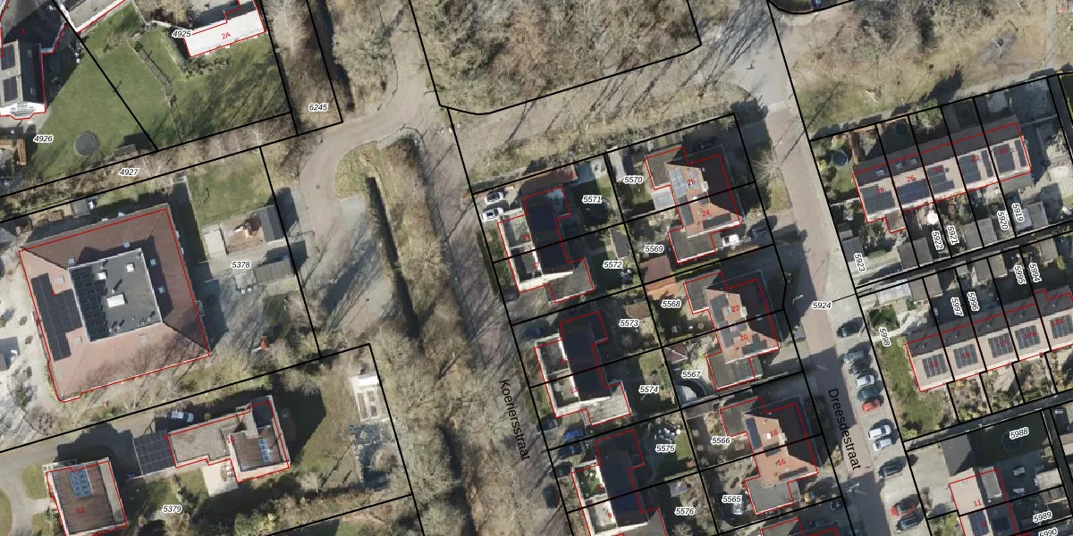 Het perceel waarop Koeriersstraat 17 staat heeft een oppervlakte van 314 m². Dit is een groot perceel. De perceeloppervlakte wordt geregistreerd door het Kadaster. Gedetailleerde informatie over de maten van dit perceel kunt u vinden in het rapport Kadastrale kaart met maatvoering van Koeriersstraat 17.