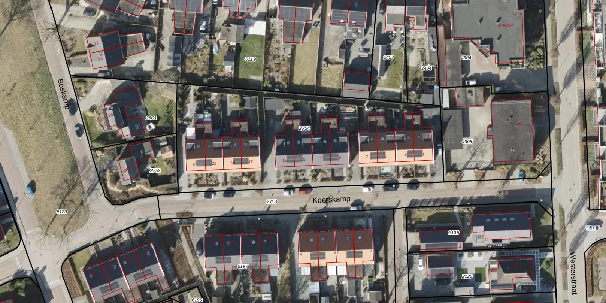 Koerskamp 13 is gelegen op kadastraal perceel RDN01I2754. Deze kadastrale aanduiding is uniek en wordt gebruikt door het Kadaster om eigendomsrechten en andere zakelijke rechten vast te leggen. Het perceel maakt onderdeel uit van de kadastrale gemeente Roden.