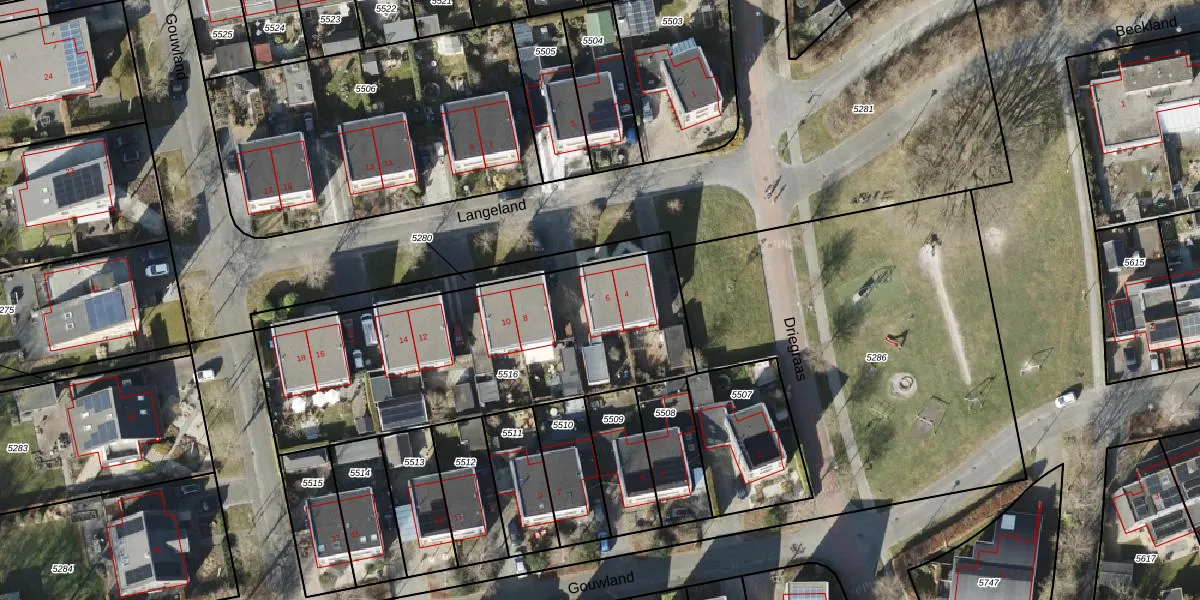 Langeland 6 is gelegen op kadastraal perceel RDN01K5516. Deze kadastrale aanduiding is uniek en wordt gebruikt door het Kadaster om eigendomsrechten en andere zakelijke rechten vast te leggen. Het perceel maakt onderdeel uit van de kadastrale gemeente Roden.