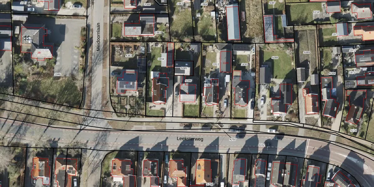 Leeksterweg 13 is gelegen op kadastraal perceel RDN01I5086. Deze kadastrale aanduiding is uniek en wordt gebruikt door het Kadaster om eigendomsrechten en andere zakelijke rechten vast te leggen. Het perceel maakt onderdeel uit van de kadastrale gemeente Roden.