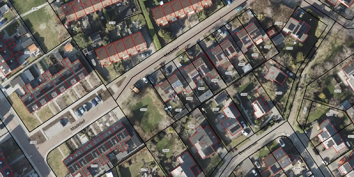 Het perceel waarop Madelief 15 staat heeft een oppervlakte van 255 m². Dit is een middelgroot perceel. De perceeloppervlakte wordt geregistreerd door het Kadaster. Gedetailleerde informatie over de maten van dit perceel kunt u vinden in het rapport Kadastrale kaart met maatvoering van Madelief 15.