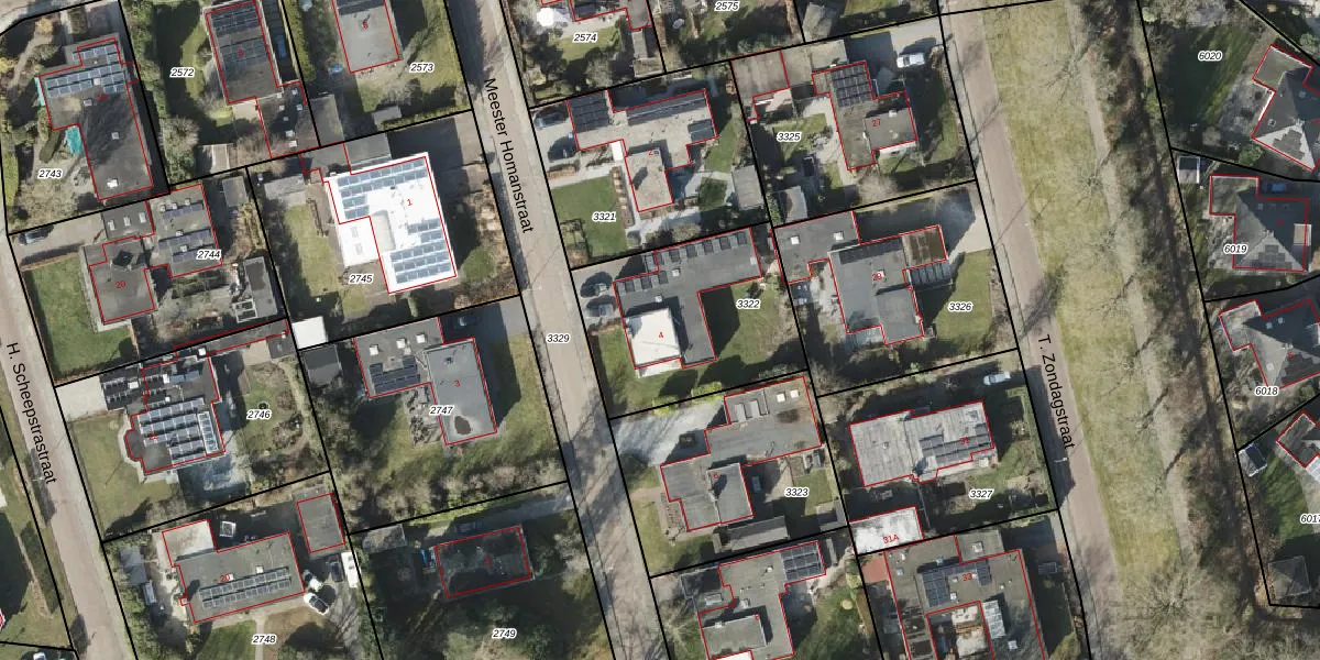 Meester Homanstraat 4 is gelegen op kadastraal perceel RDN01I3322. Deze kadastrale aanduiding is uniek en wordt gebruikt door het Kadaster om eigendomsrechten en andere zakelijke rechten vast te leggen. Het perceel maakt onderdeel uit van de kadastrale gemeente Roden.