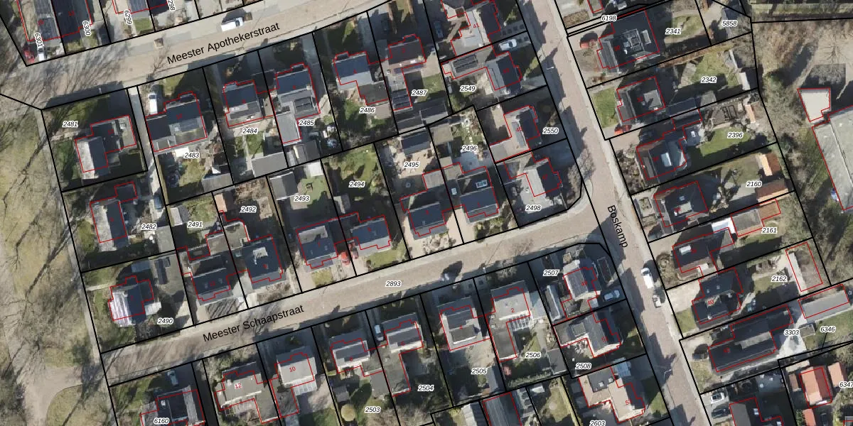 Het perceel waarop Meester Schaapstraat 3 staat heeft een oppervlakte van 385 m². Dit is een groot perceel. De perceeloppervlakte wordt geregistreerd door het Kadaster. Gedetailleerde informatie over de maten van dit perceel kunt u vinden in het rapport Kadastrale kaart met maatvoering van Meester Schaapstraat 3.