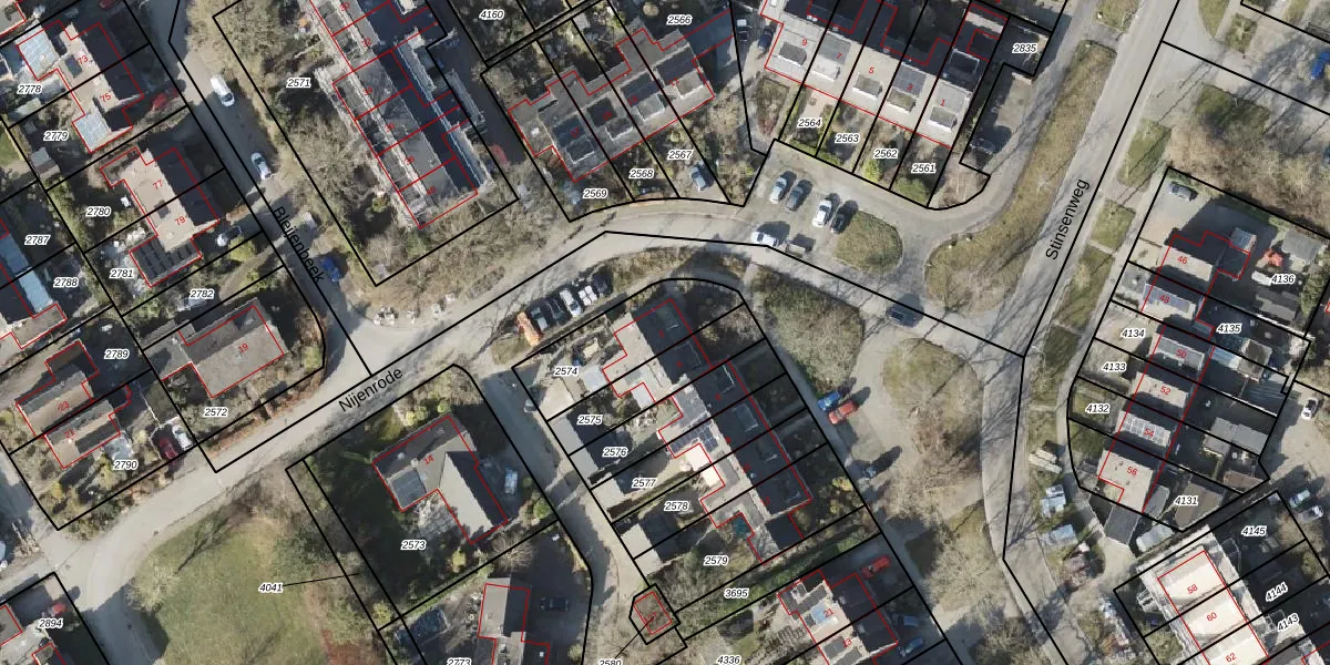Het perceel waarop het adres ligt is RDN01-H-2574. De afkorting 'RDN01' staat voor kadastrale gemeente Roden. De gemiddelde perceelgrootte in Roden is 5510,59 m². Dit perceel is kleiner: de perceeloppervlakte bedraagt 306 m². Het kleinste perceel in de kadastrale gemeente is 0 m² groot. De grootste perceeloppervlakte is 1,51 km². Er zijn geen andere adressen aanwezig op het perceel. De huidige grenzen van het perceel zijn digitaal in de Basisregistratie Kadaster (BRK) geregistreerd op 18-10-2011.