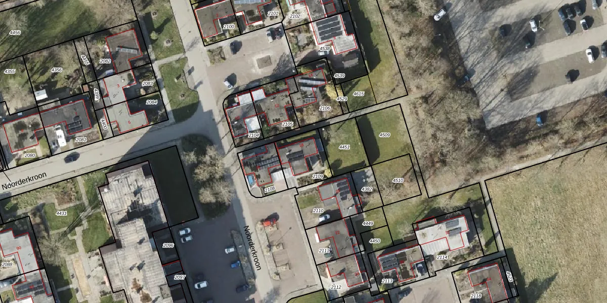 Het perceel waarop Noorderkroon 18 staat heeft een oppervlakte van 250 m². Dit is een middelgroot perceel. De perceeloppervlakte wordt geregistreerd door het Kadaster. Gedetailleerde informatie over de maten van dit perceel kunt u vinden in het rapport Kadastrale kaart met maatvoering van Noorderkroon 18.
