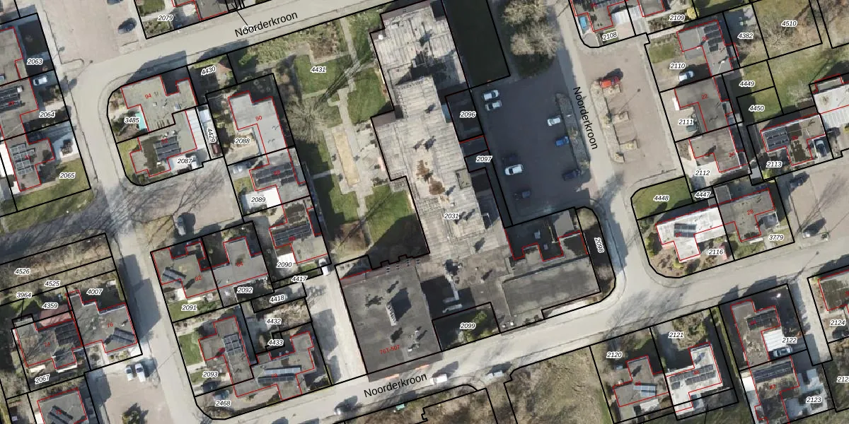 Het perceel waarop Noorderkroon 311 staat heeft een oppervlakte van 2253 m². Dit is een zeer groot perceel. De perceeloppervlakte wordt geregistreerd door het Kadaster. Gedetailleerde informatie over de maten van dit perceel kunt u vinden in het rapport Kadastrale kaart met maatvoering van Noorderkroon 311.